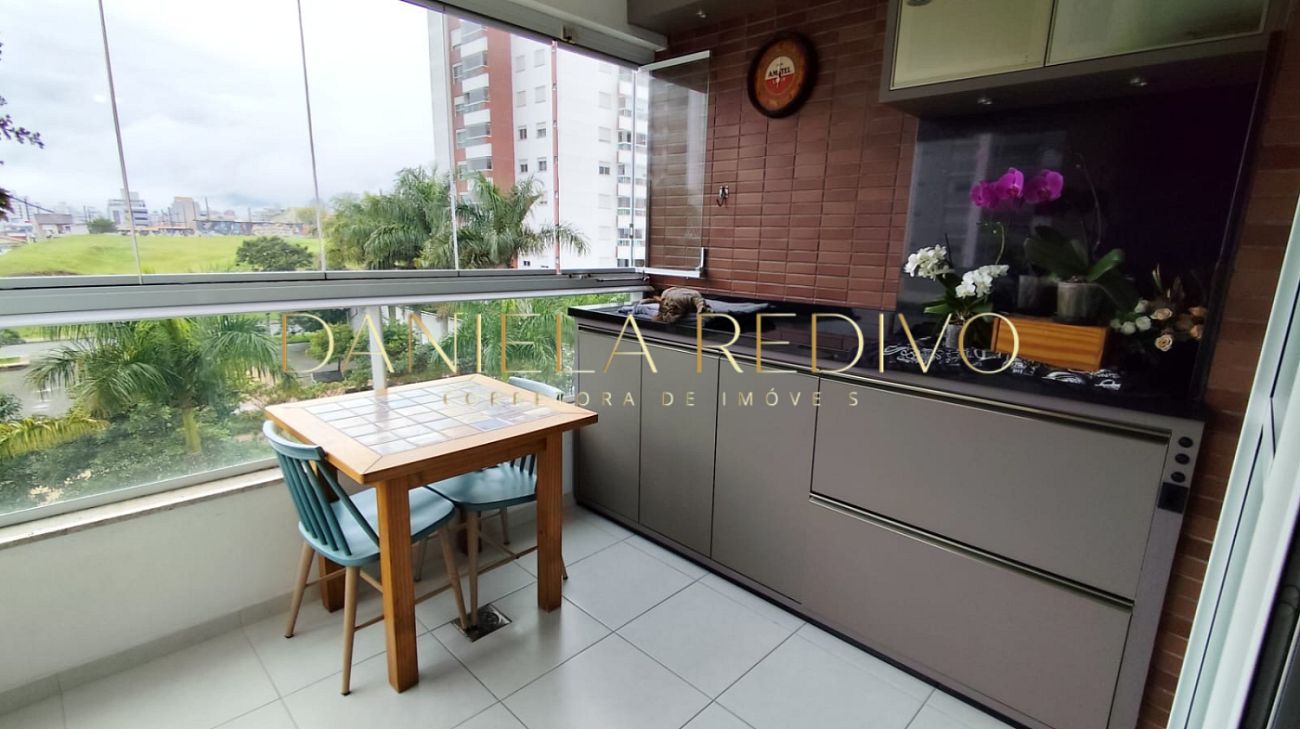 A planta é ampla e funcional, com móveis planejados em todos os ambientes, integrando cozinha, sala de estar, jantar e TV. A sacada gourmet, já fechada com sistema Reiki, é um convite para desfrutar momentos de lazer com uma vista encantadora.