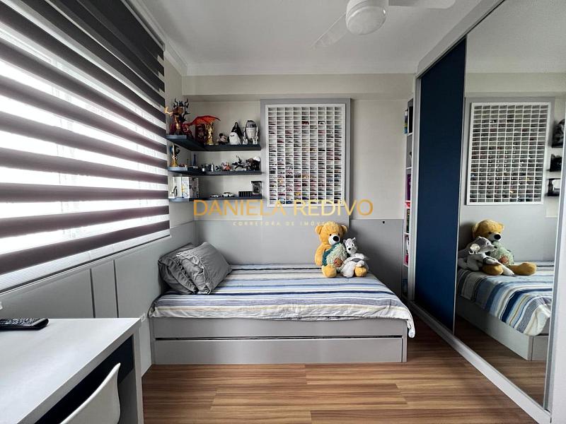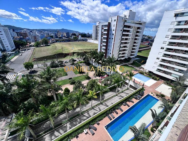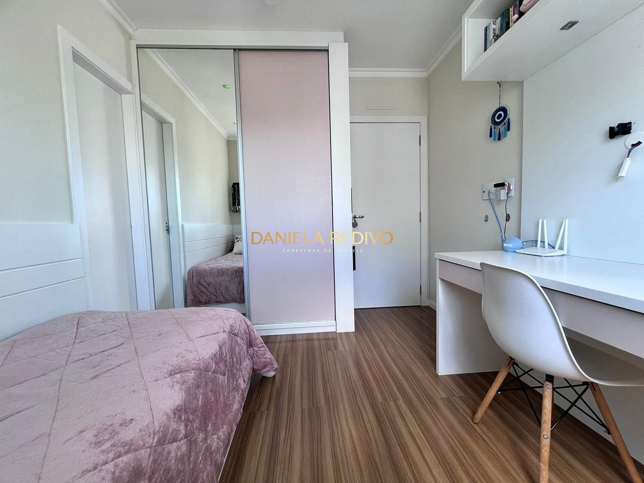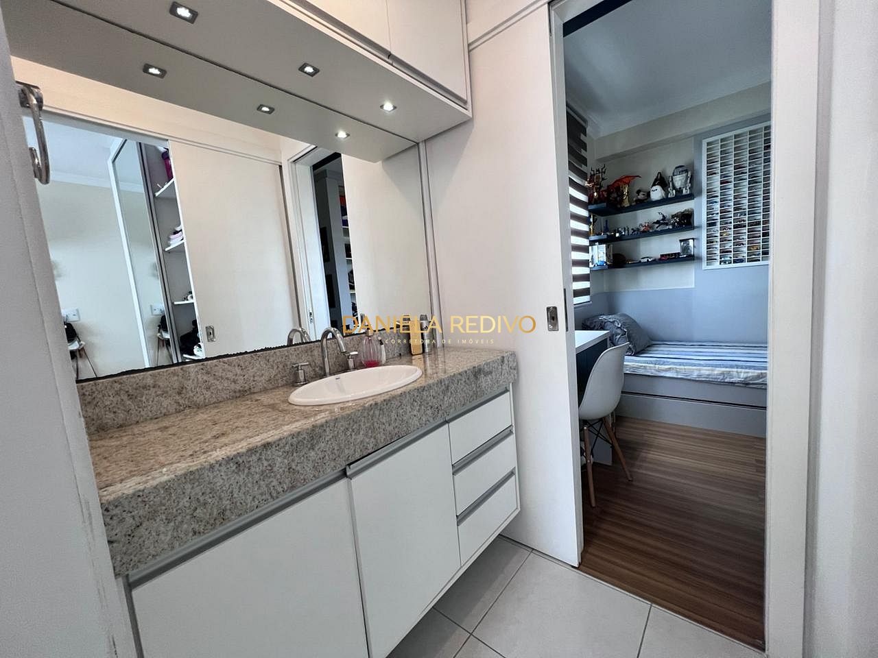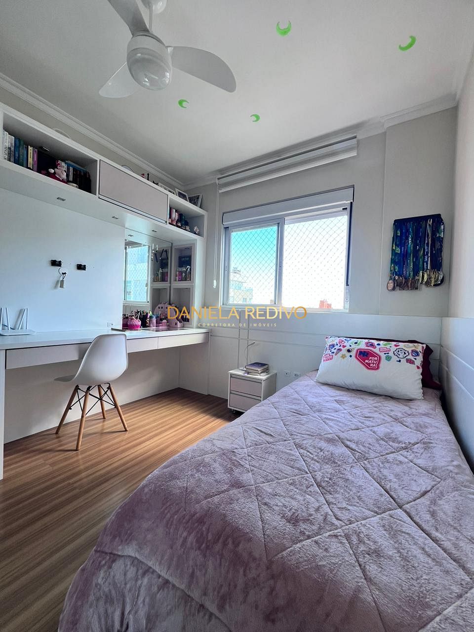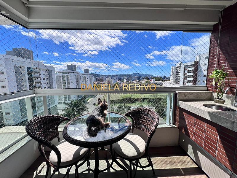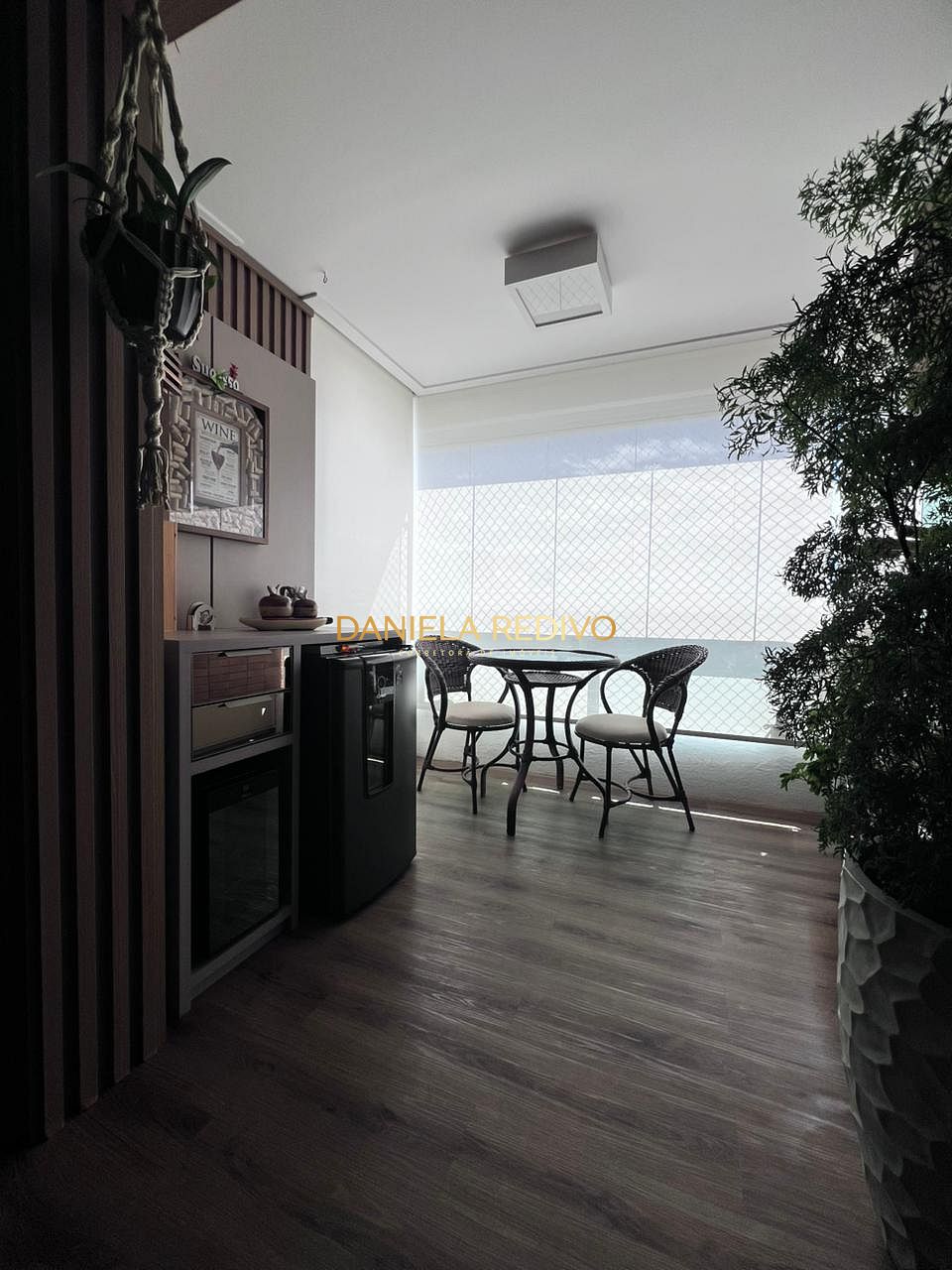 Apartamento de 84 m² privativos, localizado no 7º andar, com 3 dormitórios (sendo 1 suíte e 2 demi-suítes), 2 vagas de garagem e um living espaçoso integrado à sala de jantar e sala de TV.