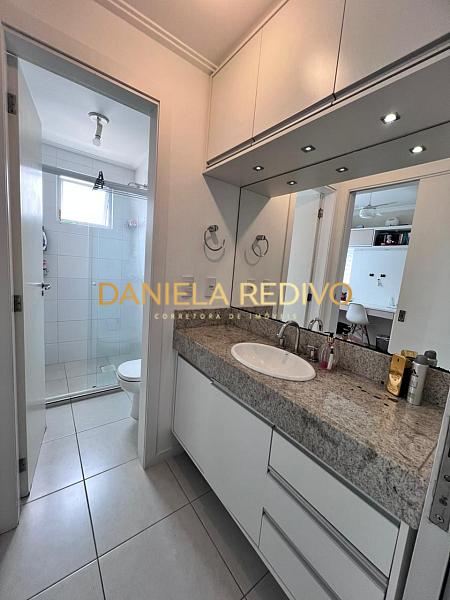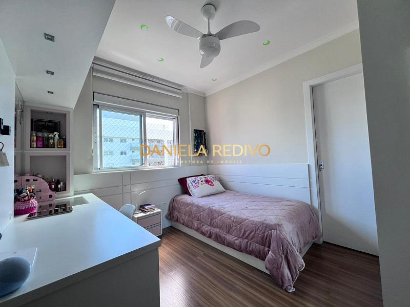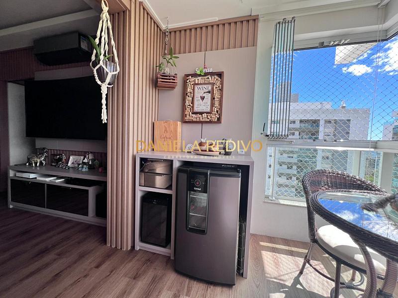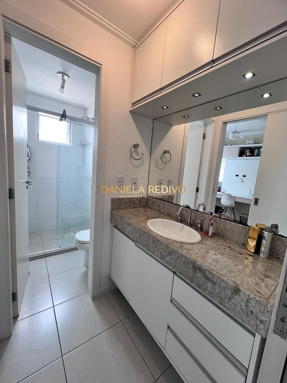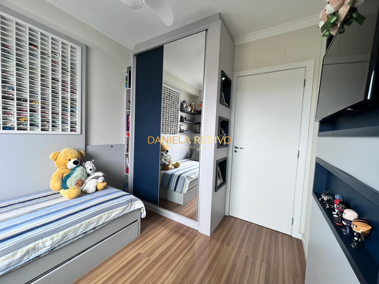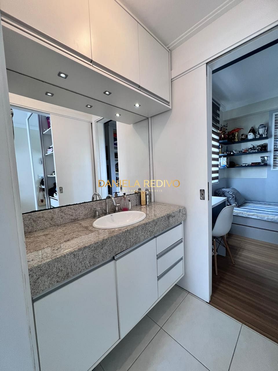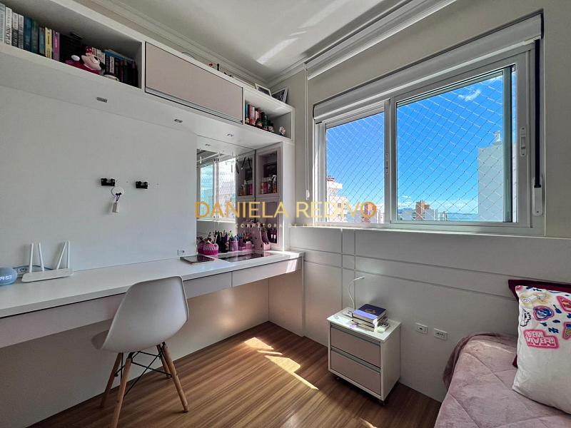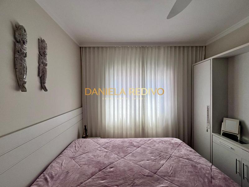Apartamento de 84 m² privativos, localizado no 7º andar, com 3 dormitórios (sendo 1 suíte e 2 demi-suítes), 2 vagas de garagem e um living espaçoso integrado à sala de jantar e sala de TV.