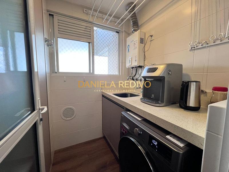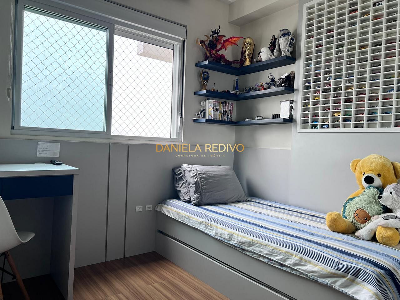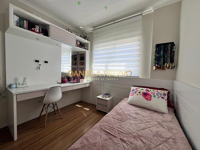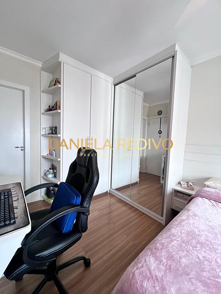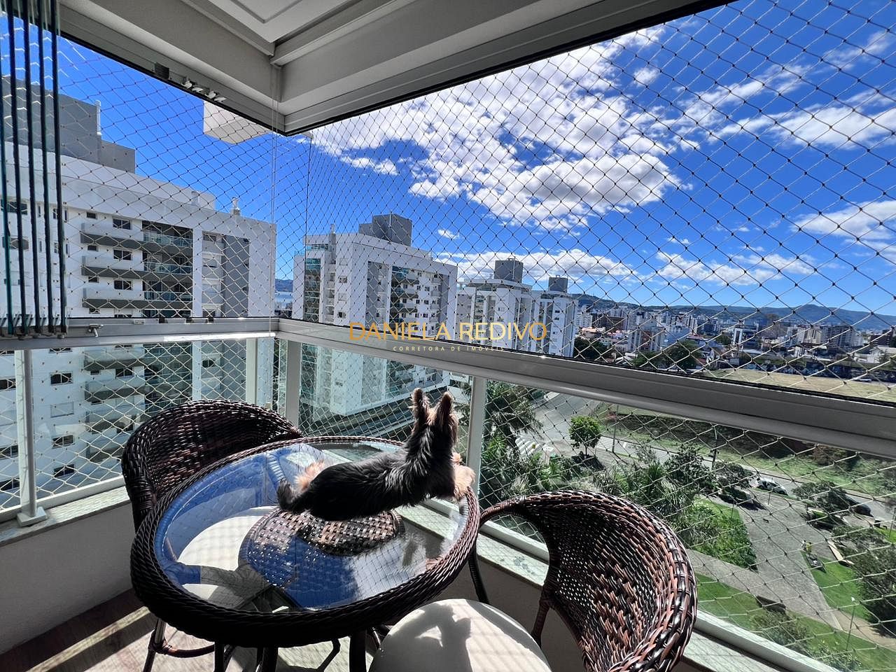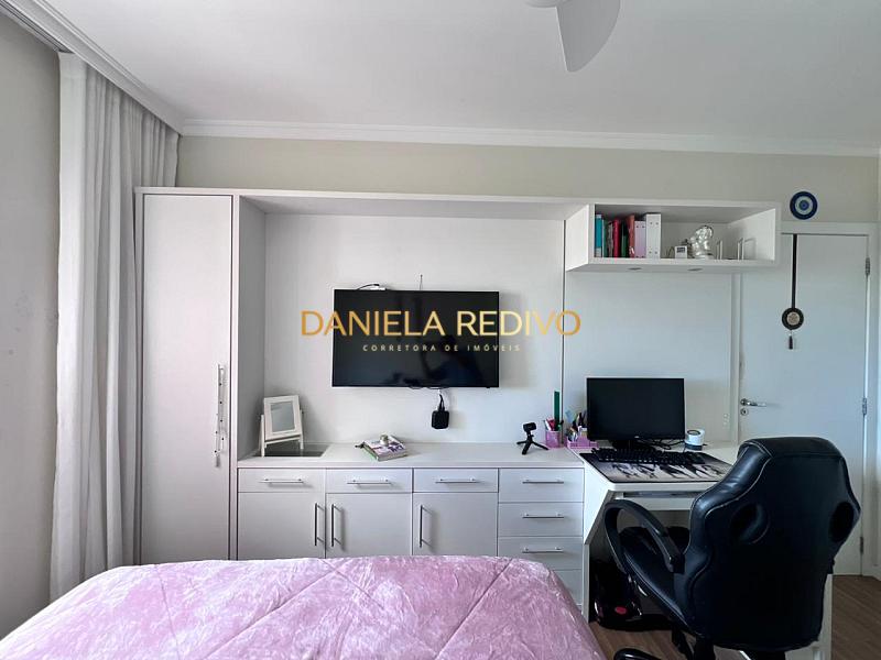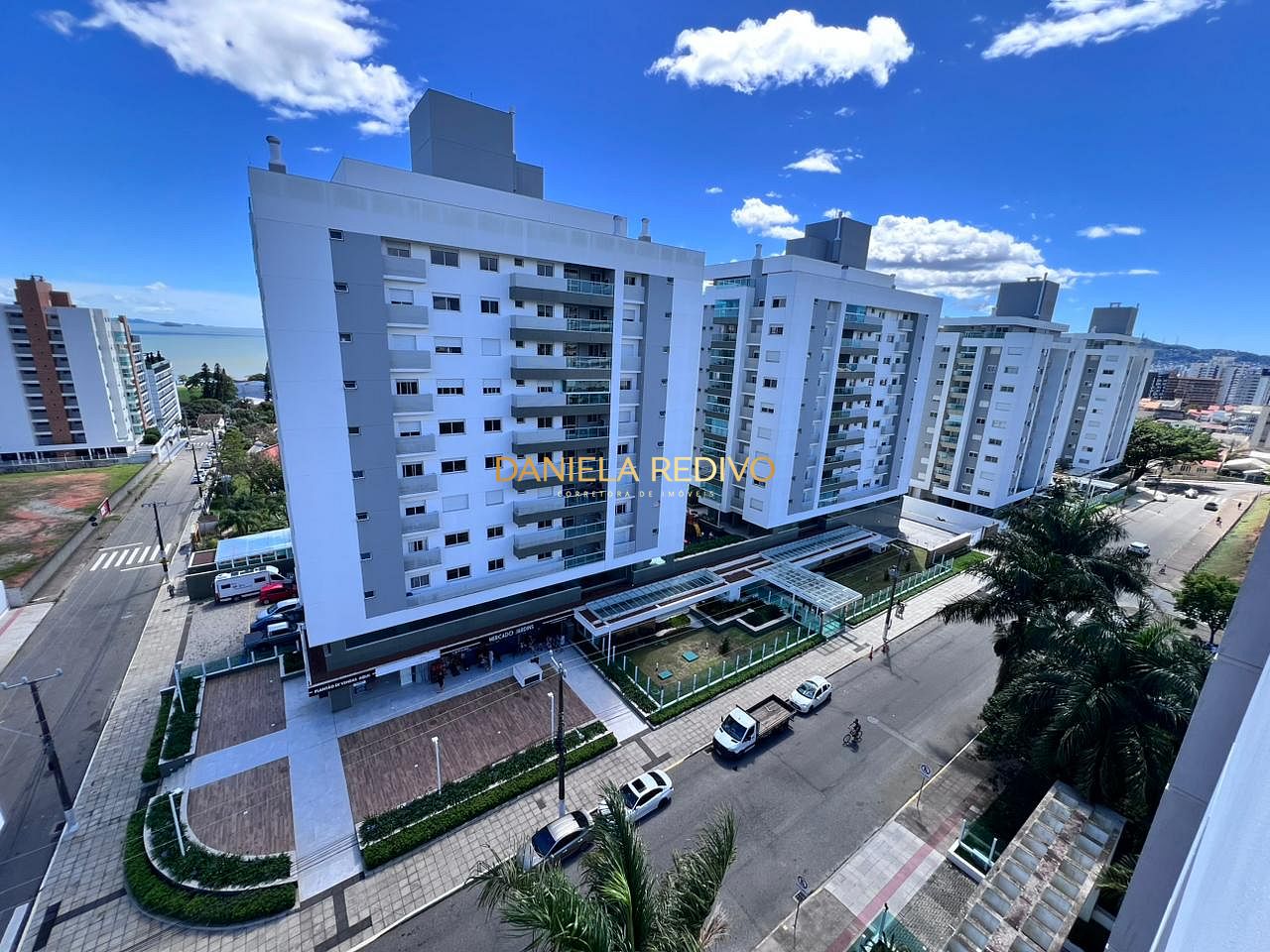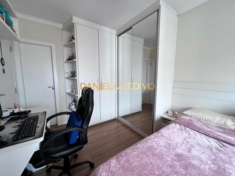 Apartamento de 84 m² privativos, localizado no 7º andar, com 3 dormitórios (sendo 1 suíte e 2 demi-suítes), 2 vagas de garagem e um living espaçoso integrado à sala de jantar e sala de TV.