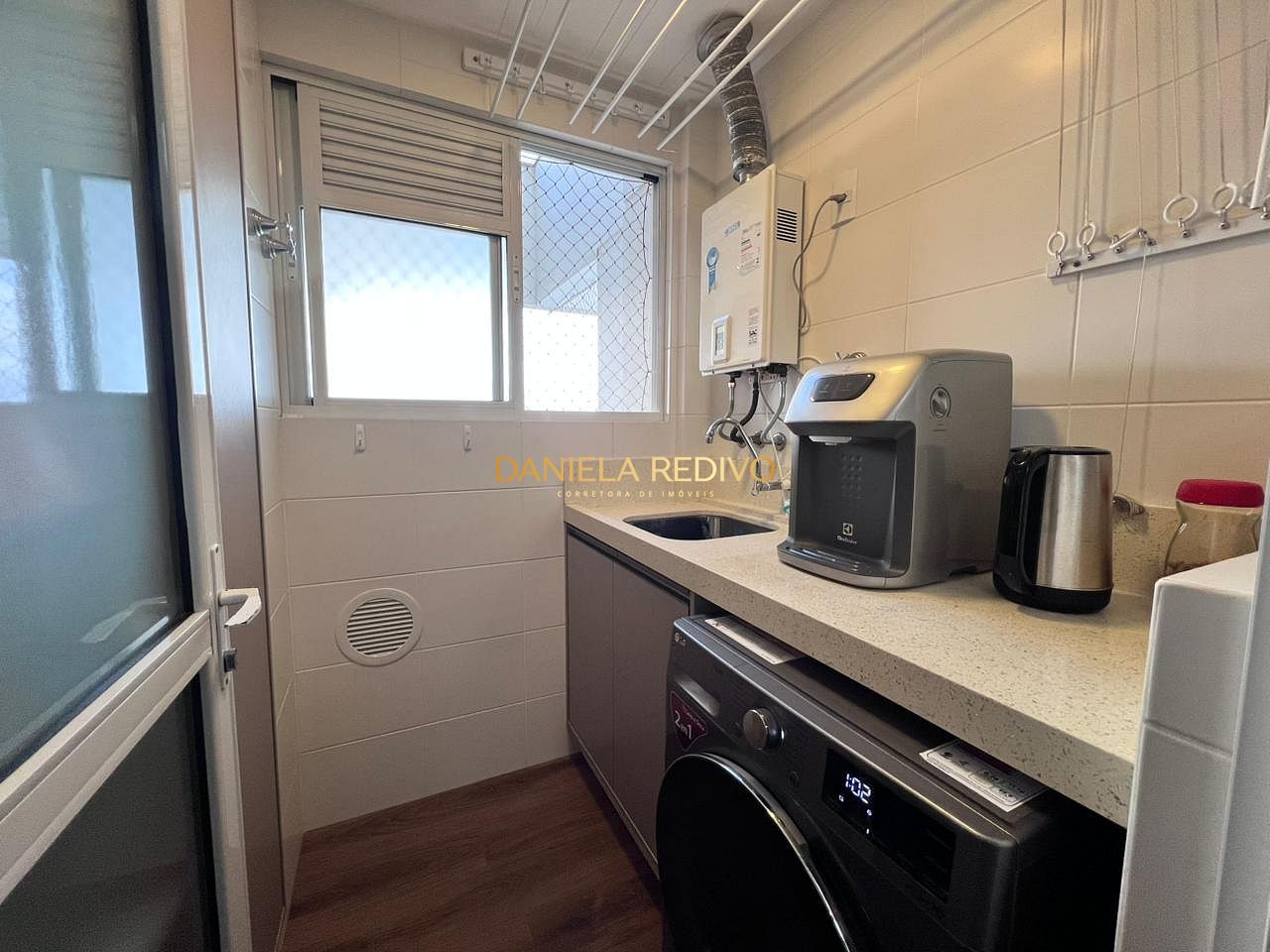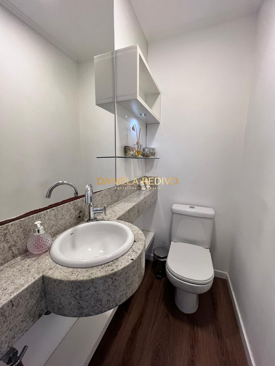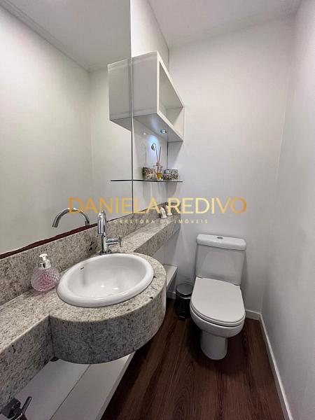 O imóvel conta ainda com cozinha americana, lavabo, banheiro social, estar íntimo, móveis planejados e ar-condicionado.