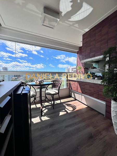A sacada com churrasqueira e a vista panorâmica tornam o ambiente perfeito para receber amigos e familiares.