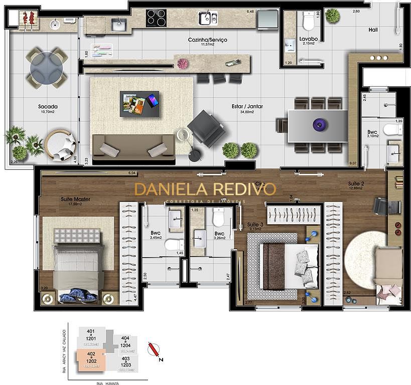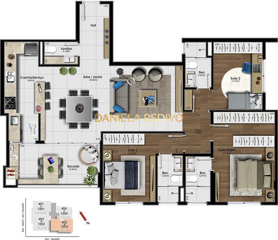 Apartamentos com 3 suítes + Lavabo