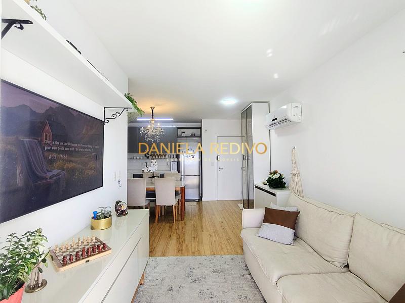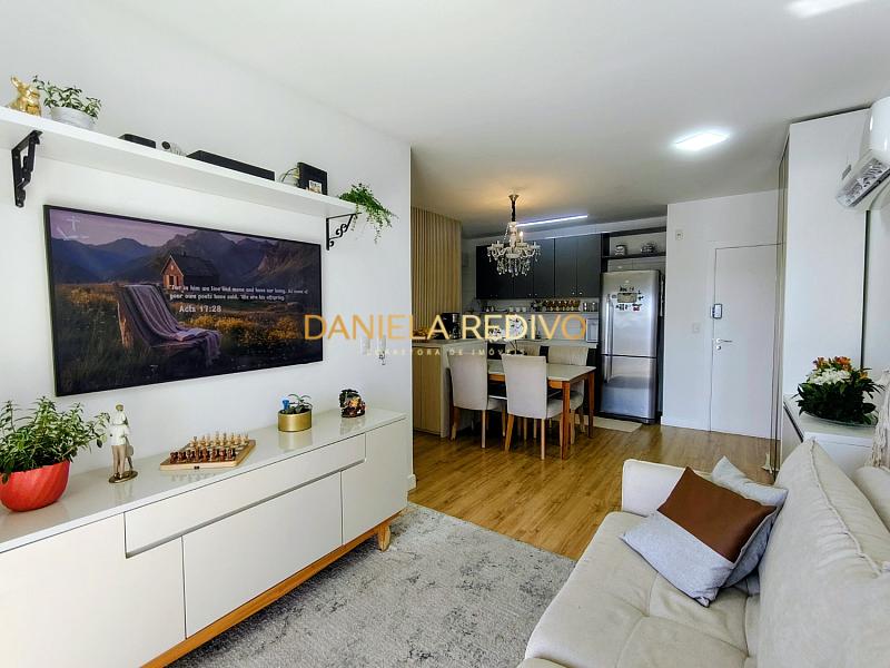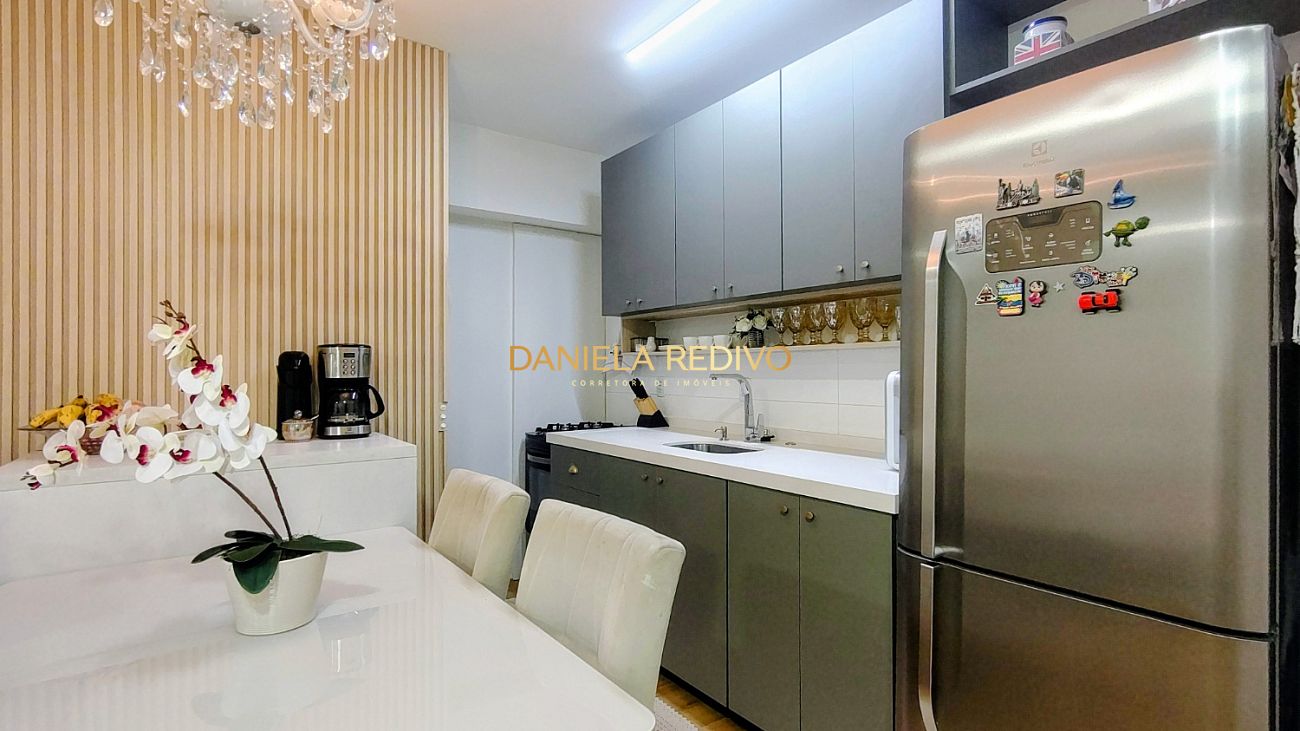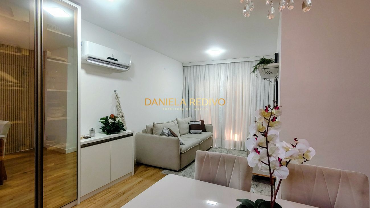 Um apartamento semi-mobiliado, climatizado, com 77m² bem distribuídos, 3 dormitórios (sendo 1 suíte), persianas integradas que trazem mais conforto no dia a dia e uma sacada com churrasqueira a carvão para aproveitar seus momentos.